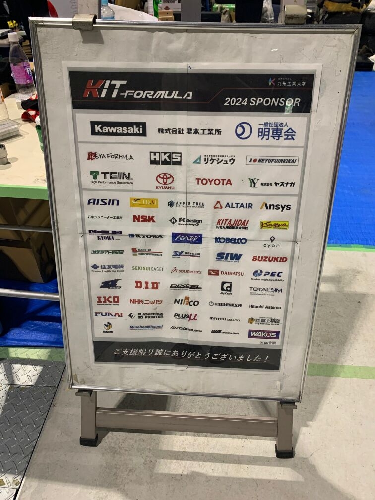 学生フォーミュラマシンの運搬をお手伝いさせて頂きました 2024年09月13日(金) 9/9~9/14までAichi Sky Expoで開催されている「第22回 学生フォーミュラ日本大会 2024」に出場している九州工業大学様のフォーミュラマシンの運搬をさせて頂いたご縁で弊社のロゴステッカーをマシンに貼って頂きました。 この暑さの中、九州工業大学学生フォーミュラチームの皆様もタイムアップに向けて頑張ってみえます。 お近くにお寄りの際は是非足を運んで頂いて応援して頂けたら幸いです。